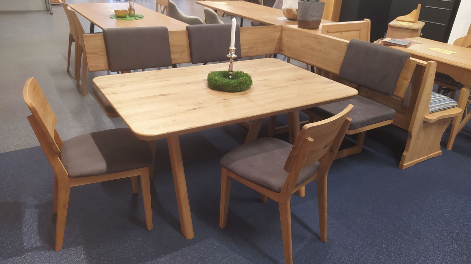 Maße ca. 190x150 cm Bezug Mercury 115 dunkelbraun Holz:Wildeiche Samtöl 4-Fußtisch 125 x 85 cm 2x Stühle